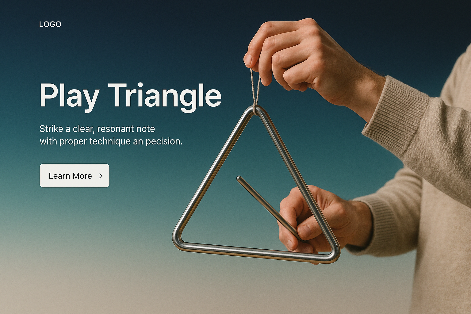 /Collection: /by davooda/Type: PNG/A modern web design concept showcasing a person holding a triangle instrument. The background features a gradient from dark to light, enhancing the visual appeal. Elements include a logo, title, descriptive text, and a call-to-action button.