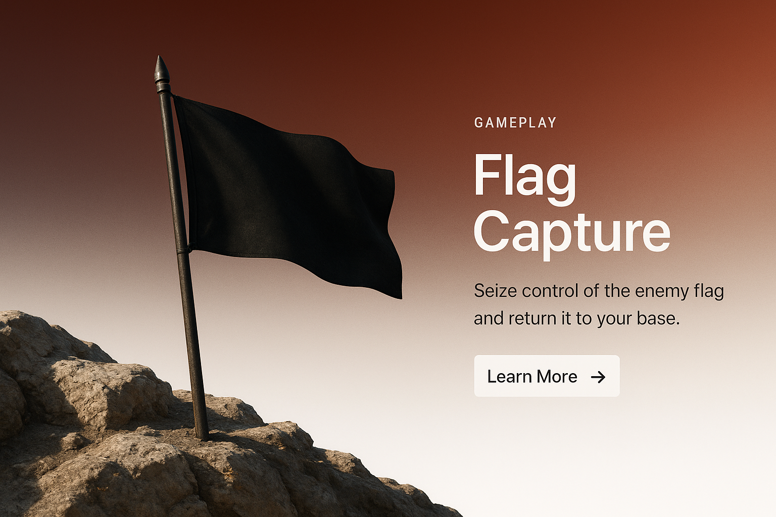 /Collection: /by davooda/Type: PNG/A striking flag capture icon featuring a black flag on a rocky surface, set against a gradient background. The design is intended for a web page with a clear call to action.