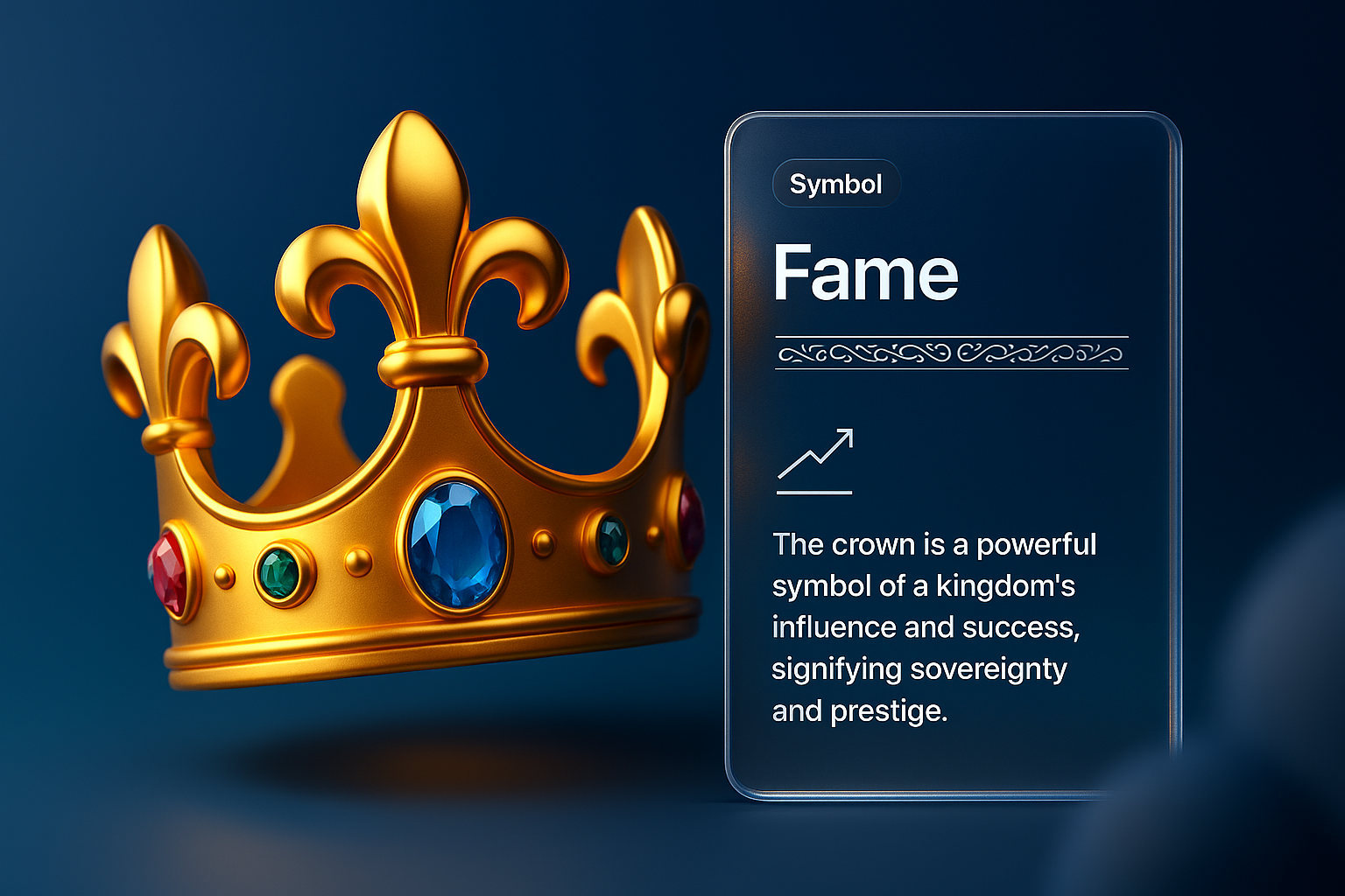 A stunning golden crown adorned with colorful precious stones, symbolizing the fame and influence of a kingdom. Set against a smooth gradient background.