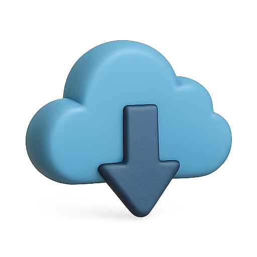 3D Cloud Download Icon with Soft Shadow