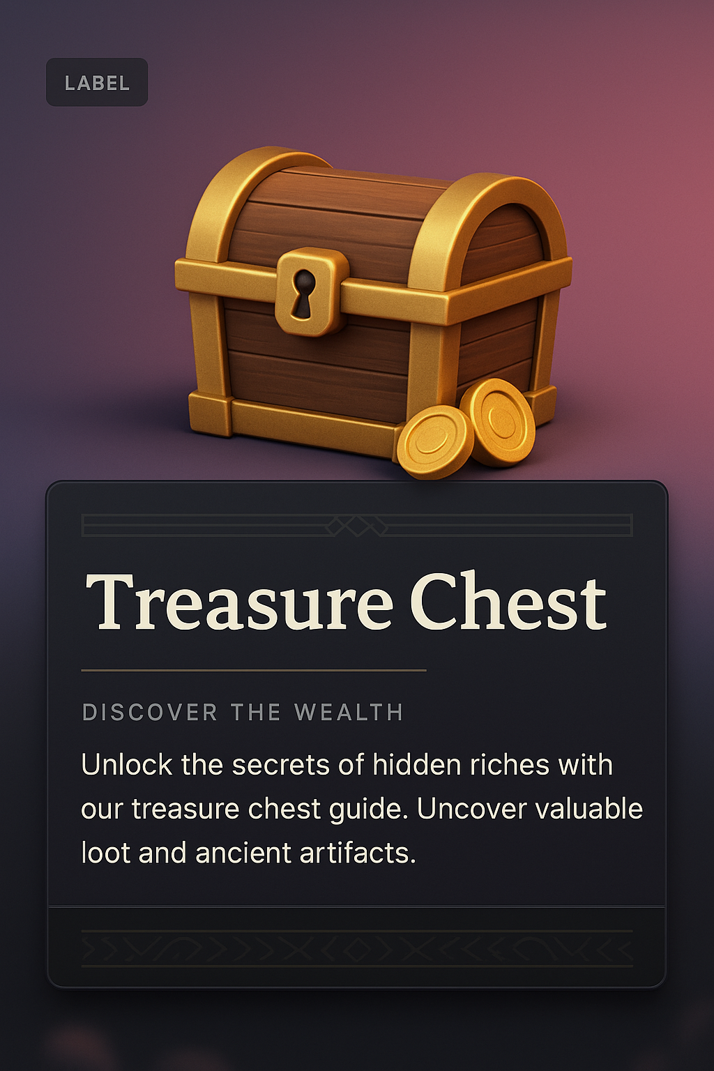 /Collection: /by davooda/Type: PNG/A visually striking 3D treasure chest illustration set against a smooth gradient background. The design features a dark label that integrates seamlessly with the chest, showcasing a captivating title and description.