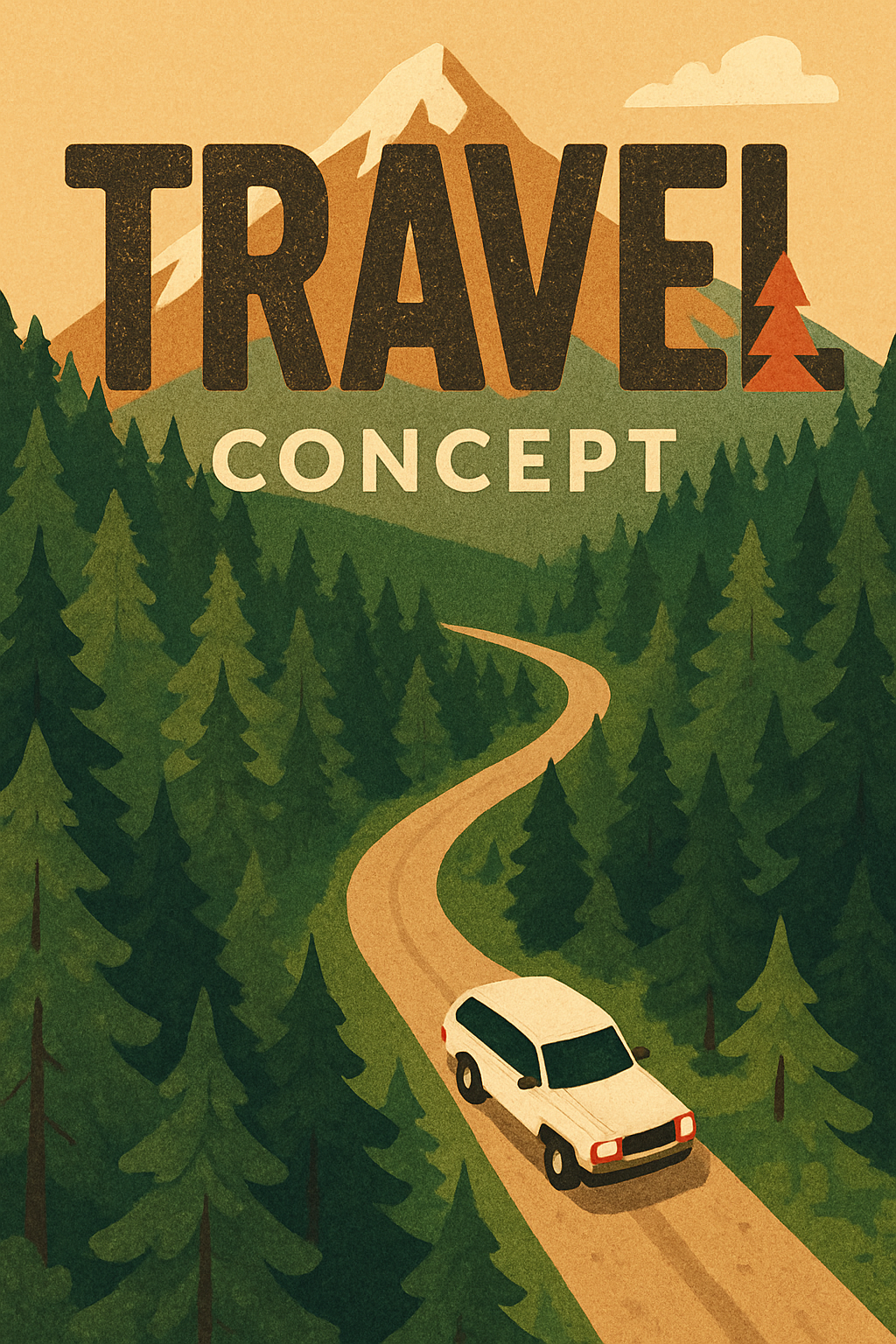 Stylized Travel Concept Illustration Featuring a Mountain Landscape