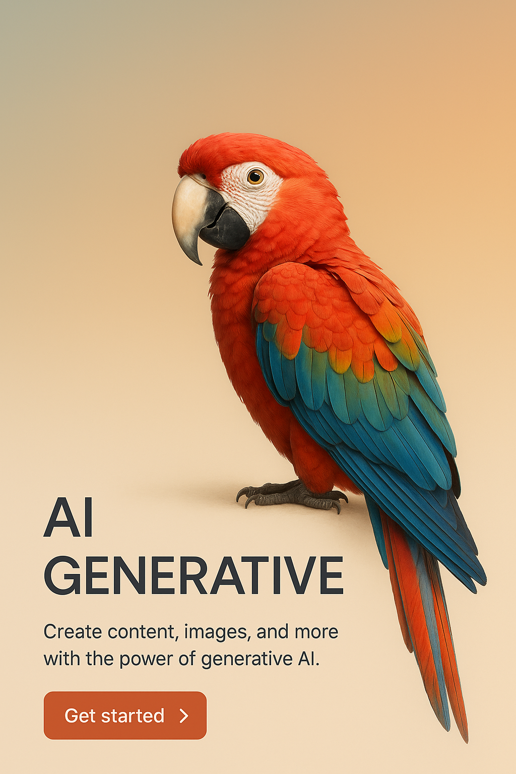 /Collection: /by davooda/Type: PNG/A vibrant red macaw stands prominently against a smooth gradient background, ideal for decorating projects. The design includes text elements for an AI generative theme.
