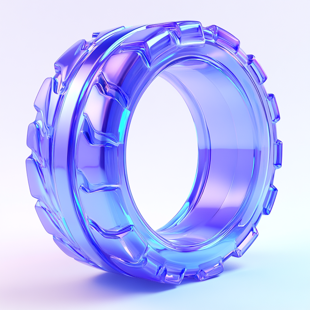 3D illustration of a transparent tire showcasing a modern design with a vibrant blue color scheme. Ideal for automotive or design-related projects.