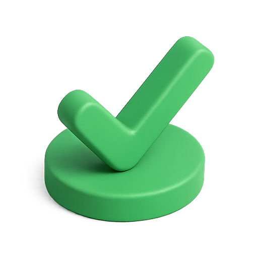Stylish 3D Checkmark Badge Icon on Transparent Background