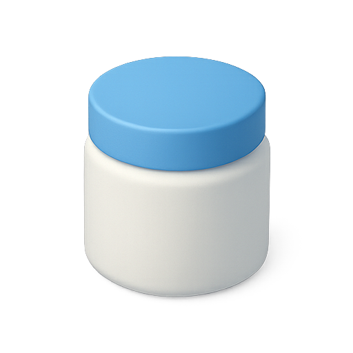 A simple yet elegant cosmetic jar design featuring a white body and a blue lid, ideal for product mockups in beauty and skincare marketing.