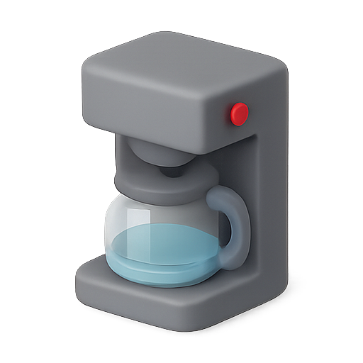 A 3D-rendered coffee maker icon featuring a sleek, minimalist design. Perfect for culinary, beverage-related apps or websites.