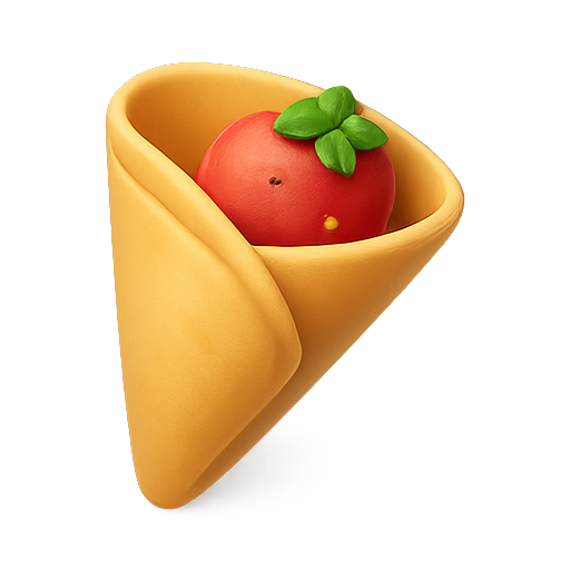 Whimsical food illustration featuring a tomato nestled in a wrap, showcasing vibrant colors and playful design elements ideal for culinary-themed content.