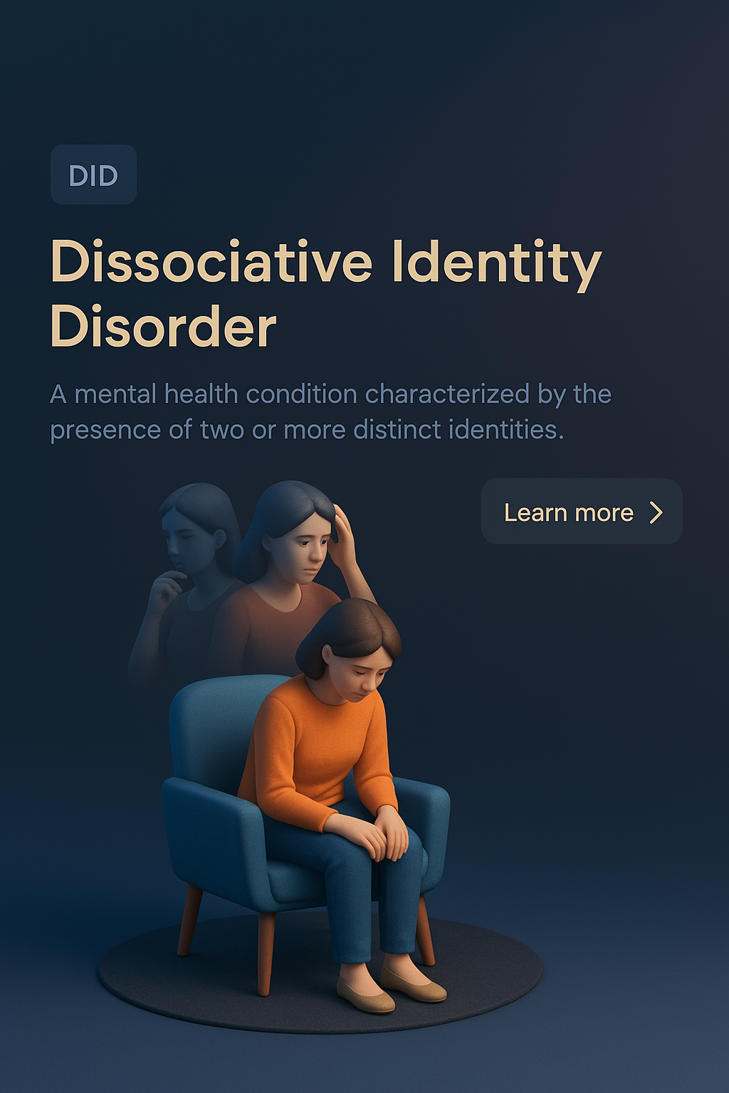 /Collection: /by davooda/Type: PNG/A detailed 3D scene illustrating Dissociative Identity Disorder, featuring a character seated in a chair, showcasing emotional depth and complexity. The background is dark with a smooth gradient, enhancing focus on the subject.