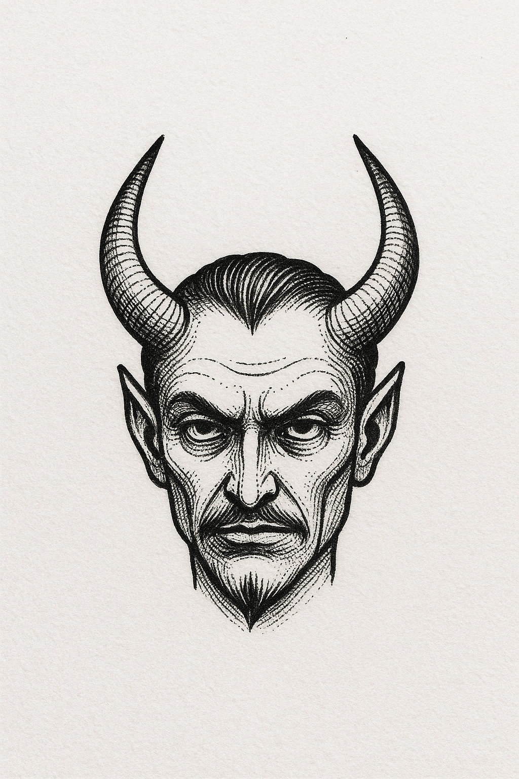 Bold Illustrative Design of a Devilish Character with Ornate Details