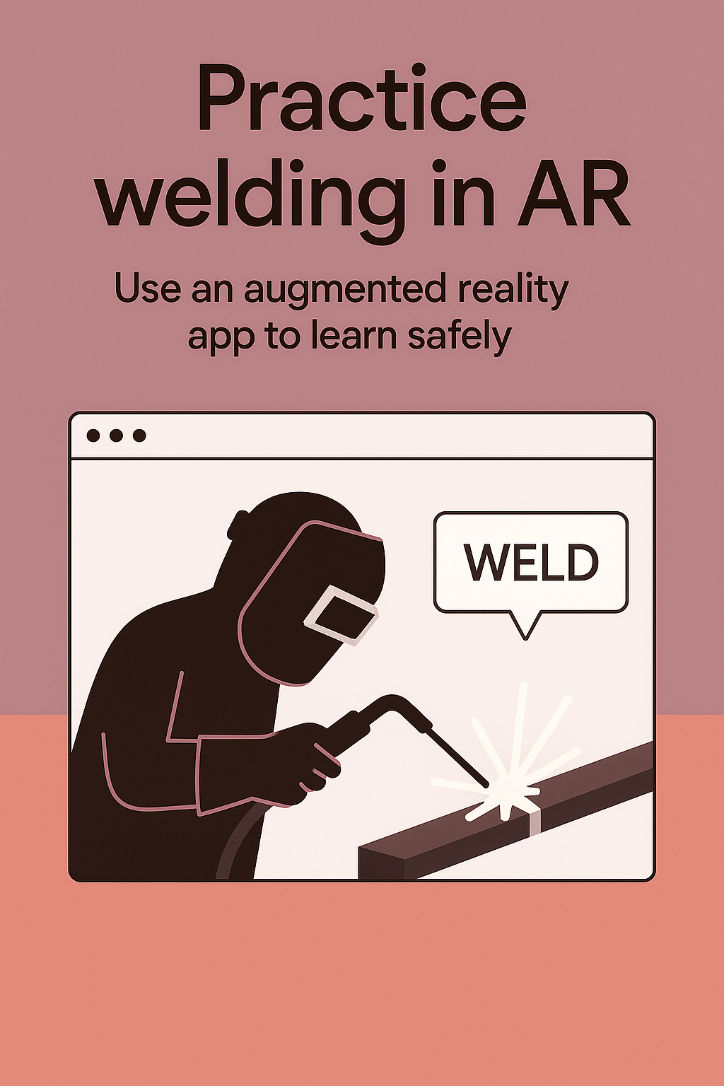 Informative graphic showcasing augmented reality welding practice, ideal for educational purposes and skill development in a safe environment.
