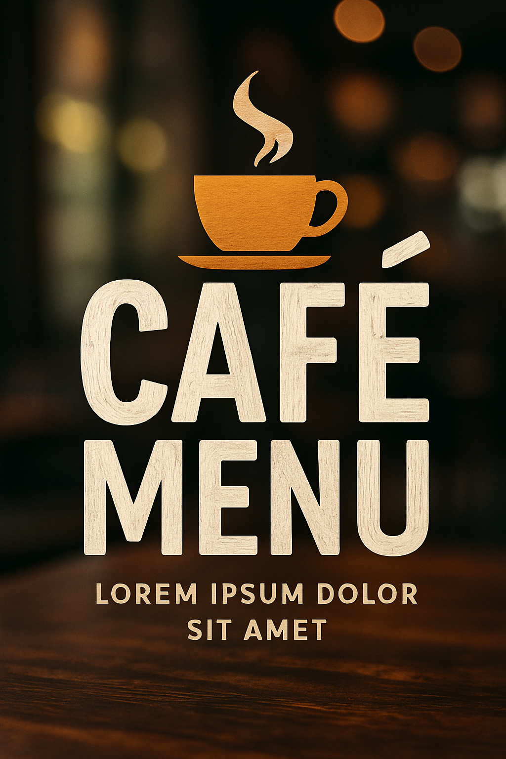 Chic café menu design featuring a coffee cup icon and rustic typography. Ideal for coffee shop branding and promotional materials.