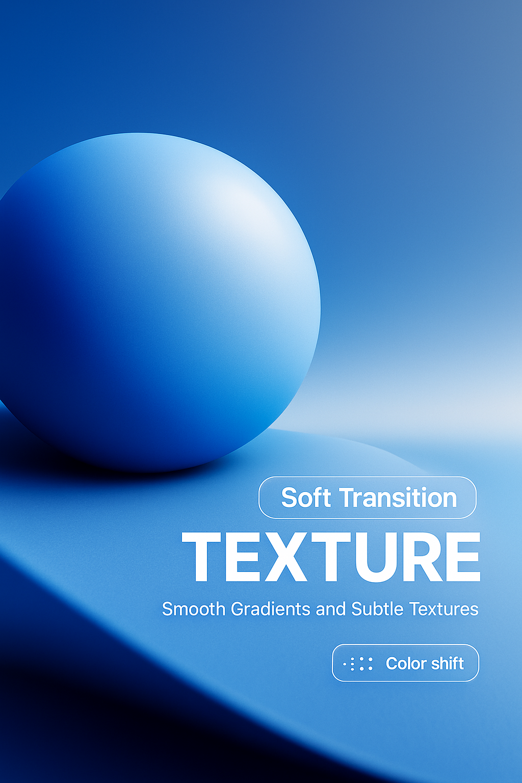 A minimalist 3D illustration featuring a smooth blue gradient background with a prominent spherical element. The design emphasizes subtle textures and clear, readable text elements.