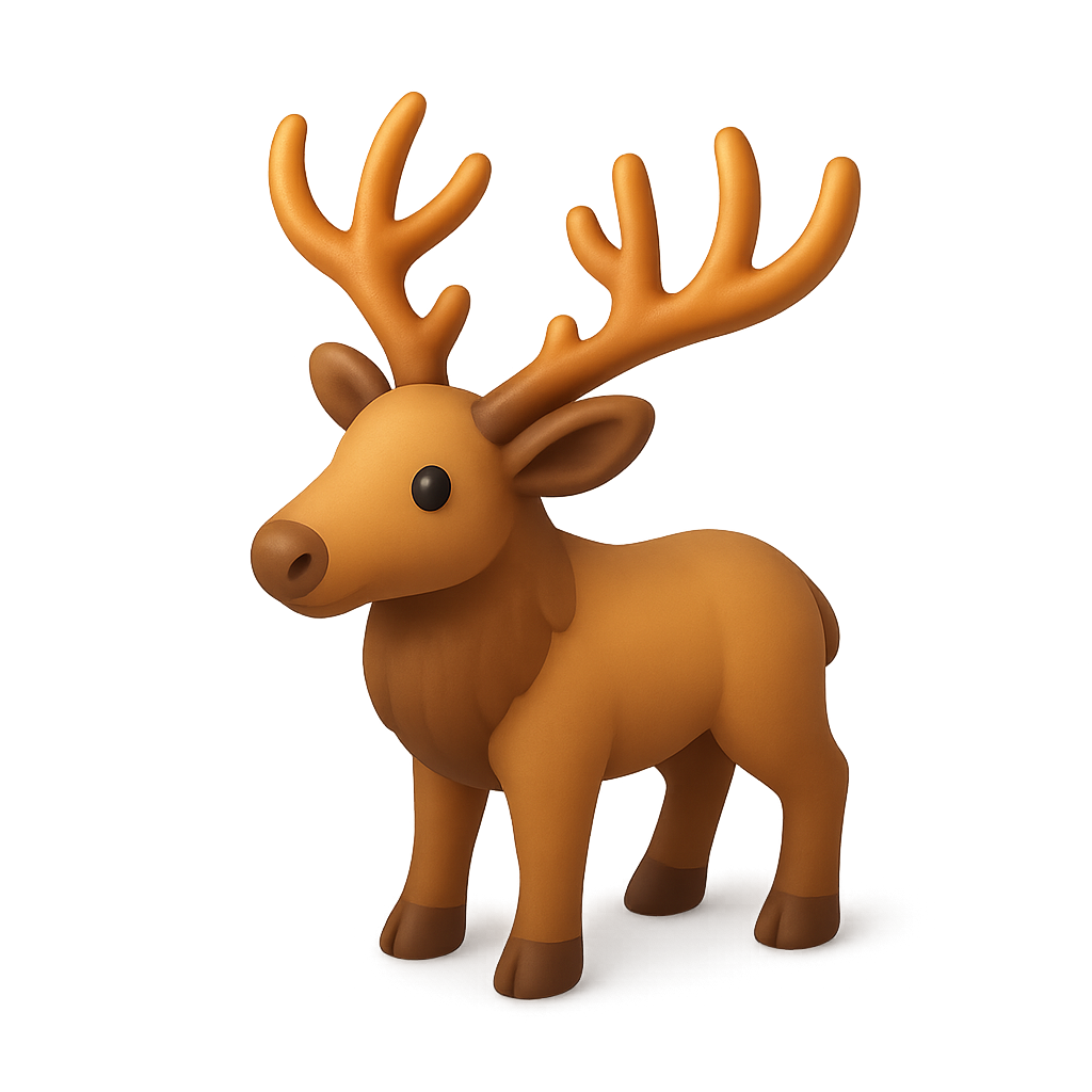 /Collection: /by davooda/Type: PNG/A stylized 3D icon of an elk featuring large, prominent antlers. The elk is presented in a three-quarter view with a smooth, volumetric design against a softly lit background.