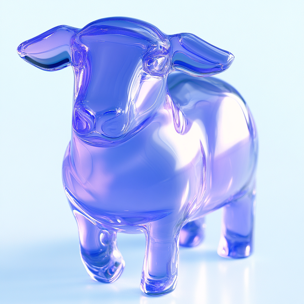 3D Rendered Glass Sheep Figurine with Soft Lighting