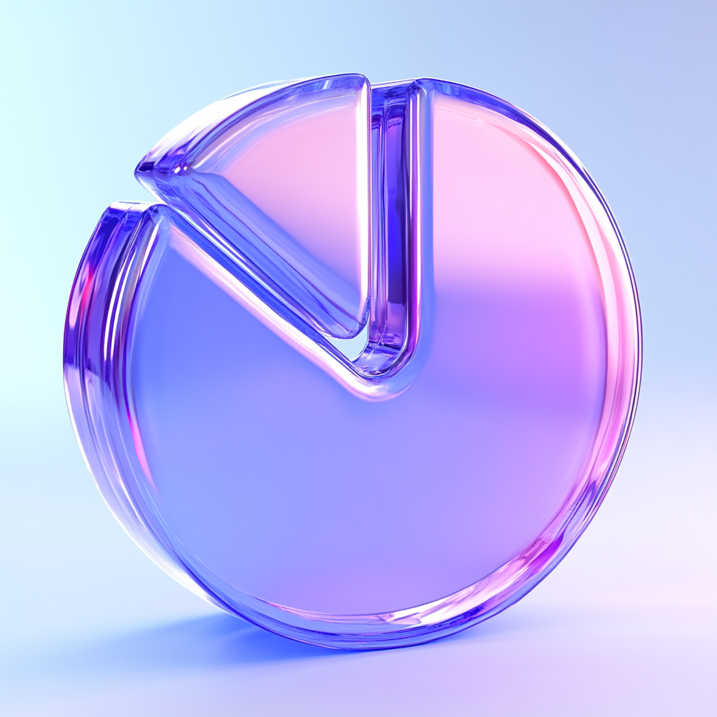 Stylized Transparent Glass Pie Chart with Gradient Colors