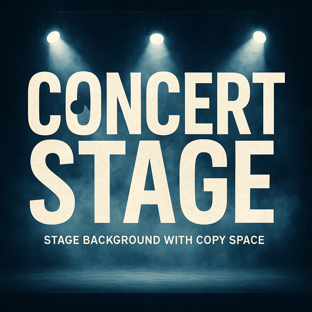 Dramatic concert stage background featuring spotlight effects and atmospheric fog, ideal for event promotions or performance announcements.