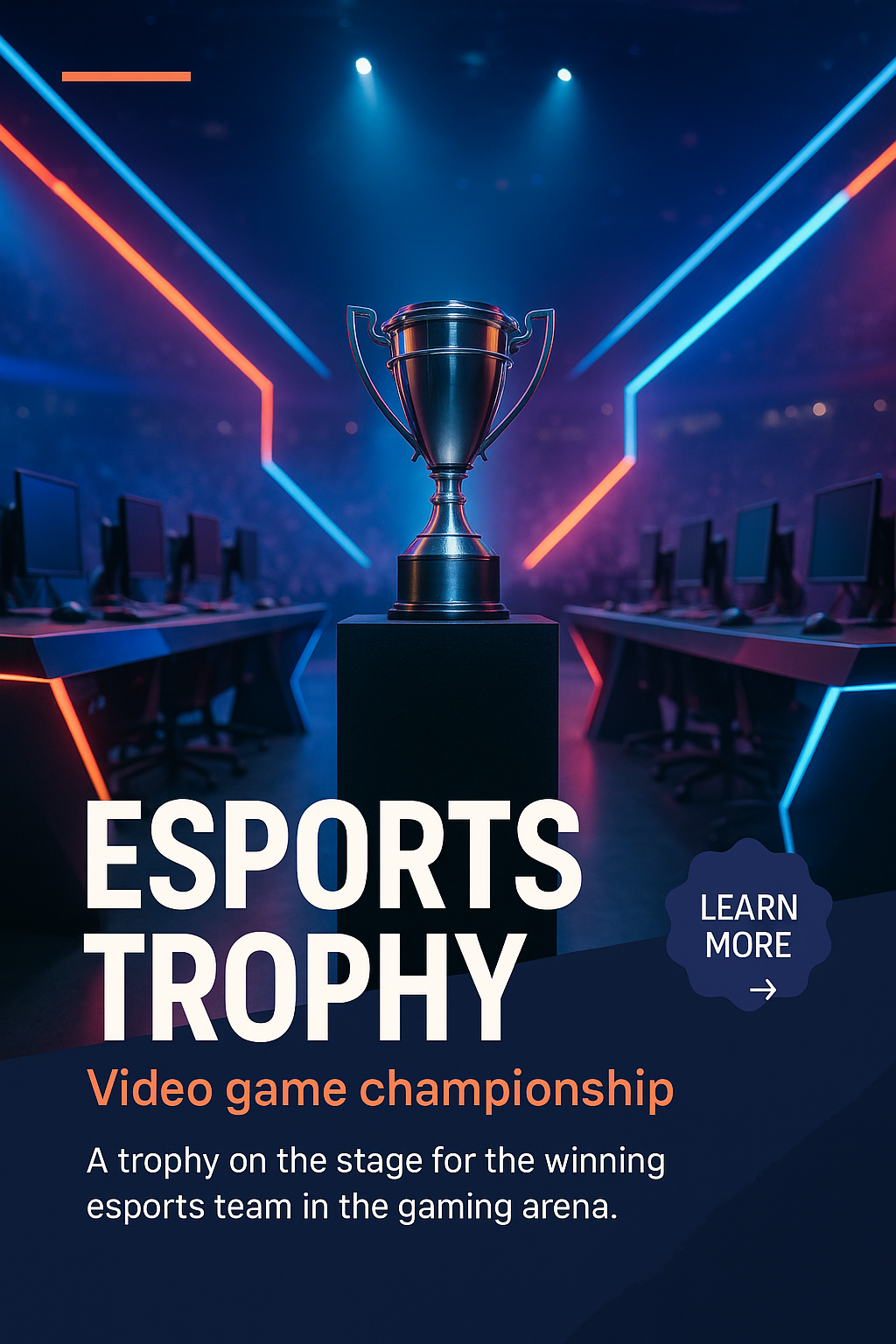 Esports Championship Promotional Graphic Featuring Trophy and Arena