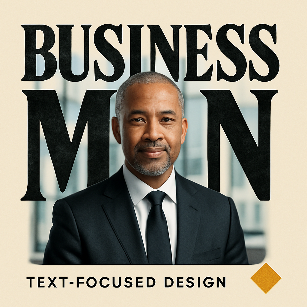 Stylish and modern portrait of a businessman featuring bold typography elements. Ideal for corporate branding and professional profiles.