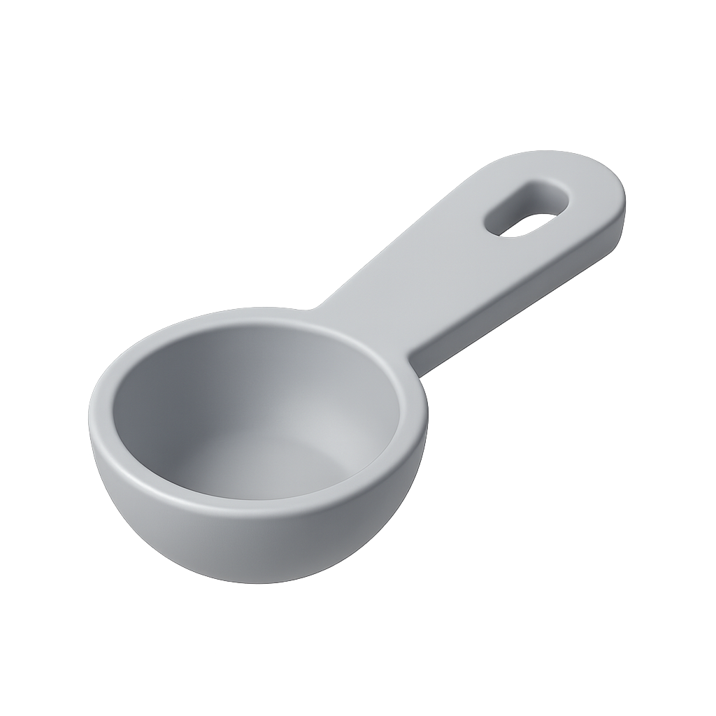 /Collection: /by davooda/Type: PNG/A sleek 3D icon of a measuring spoon depicted in a three-quarter isometric view, showcasing a smooth, rounded bowl and a sturdy handle, all against a transparent background.