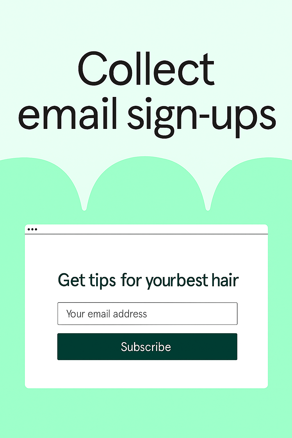 A clean and modern email sign-up form graphic designed for haircare tips, featuring a simple input field and a clear call to action, ideal for digital marketing.