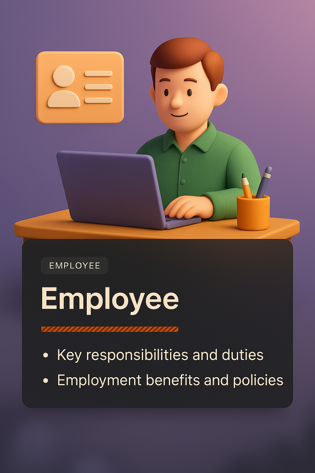 /Collection: /by davooda/Type: PNG/A 3D illustration showcasing an employee working on a laptop, with a modern design featuring a dark information block. The scene includes graphical elements that enhance the visual appeal.