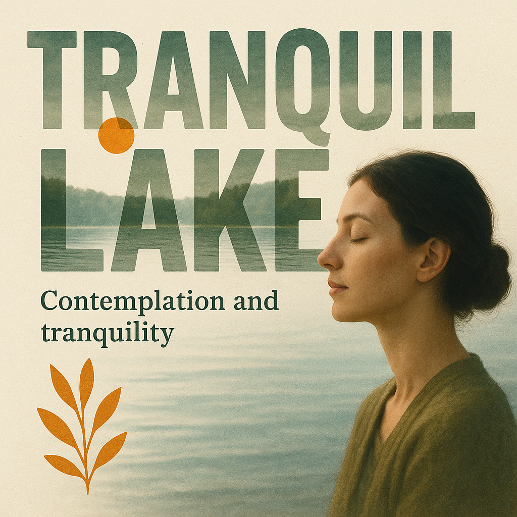 Serene Artistic Graphic Featuring Calm Lake and Woman