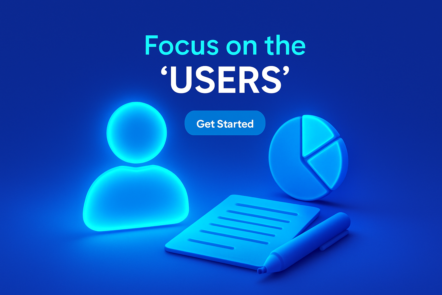 /Collection: /by davooda/Type: PNG/This vibrant composition showcases glowing objects related to users, including a user icon, a chart, and a notepad, all illuminated in neon aqua against a blue background.