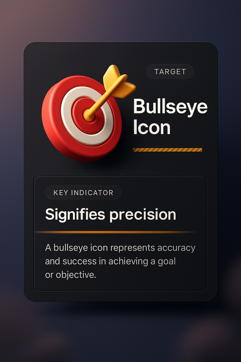 A 3D bullseye icon prominently displayed with dark, integrated design elements. The layout includes a title, supporting graphics, and descriptive text highlighting its significance.
