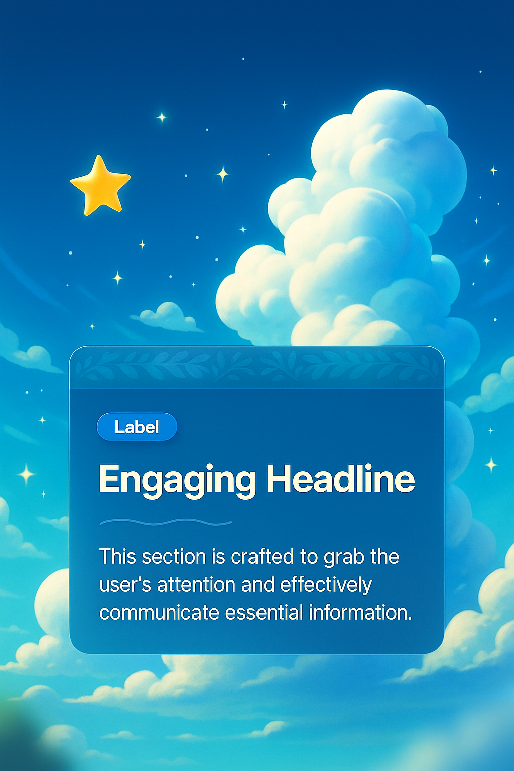 A dreamy blue sky filled with fluffy clouds and a star, featuring a prominent text block labeled 'Engaging Headline' designed to capture attention.