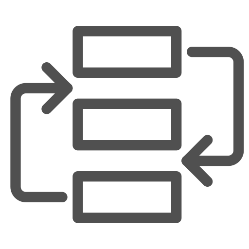 outline simple icon: data arrangement, data management, filtering, information organization, process flow