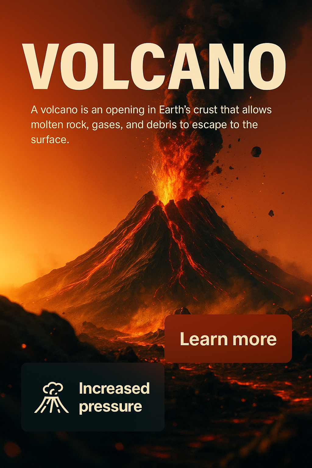 Realistic Volcano Scene with Engaging Text Elements