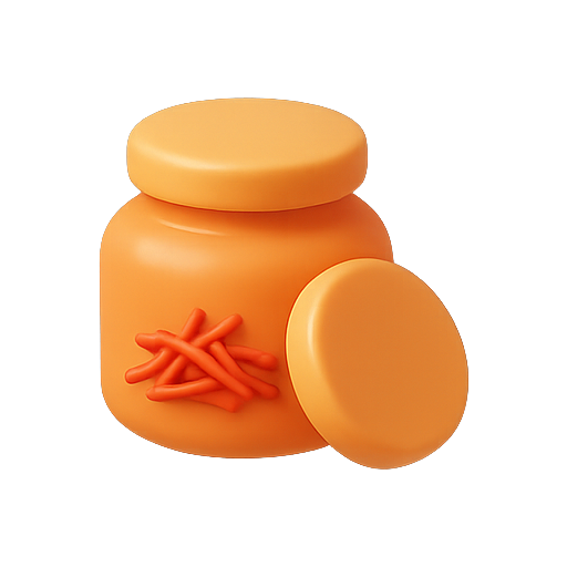 Minimalist 3D illustration of a vibrant orange jar with a lid, adorned with decorative straw elements, suitable for food-related branding or packaging design.