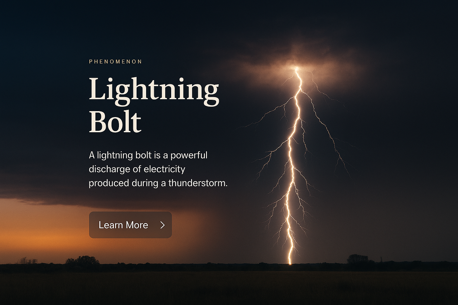 /Collection: /by davooda/Type: PNG/A dramatic illustration of a lightning bolt striking during a thunderstorm, set against a dark gradient background. Accompanied by a brief description and action button.