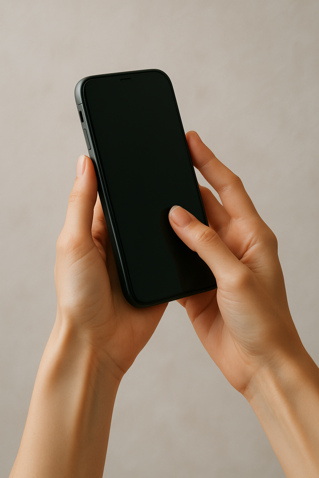 A minimalist close-up image showcasing a person holding a smartphone. The neutral background emphasizes the device, making it suitable for tech-related marketing or lifestyle blogs.