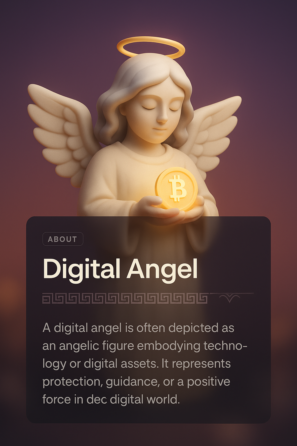 /Collection: /by davooda/Type: PNG/A captivating 3D illustration of a digital angel holding a glowing coin, symbolizing technology and protection in the digital world. The background features a smooth gradient.