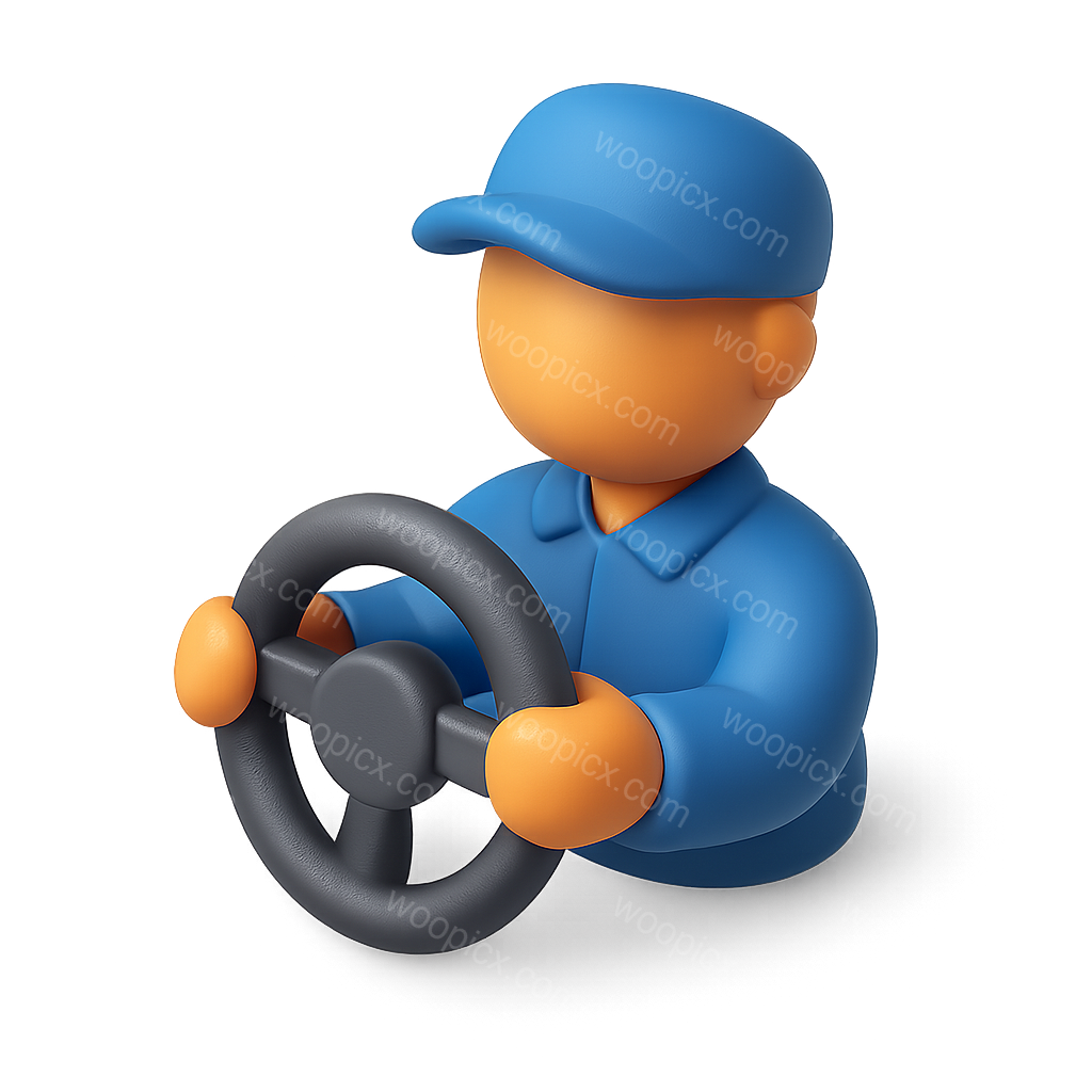 /Premium/Collection: /by davooda/Type: PNG/A stylized 3D icon of a driver holding a steering wheel, depicted in a three-quarter view with a vibrant blue outfit. The background is transparent, enhancing the 3D effect.