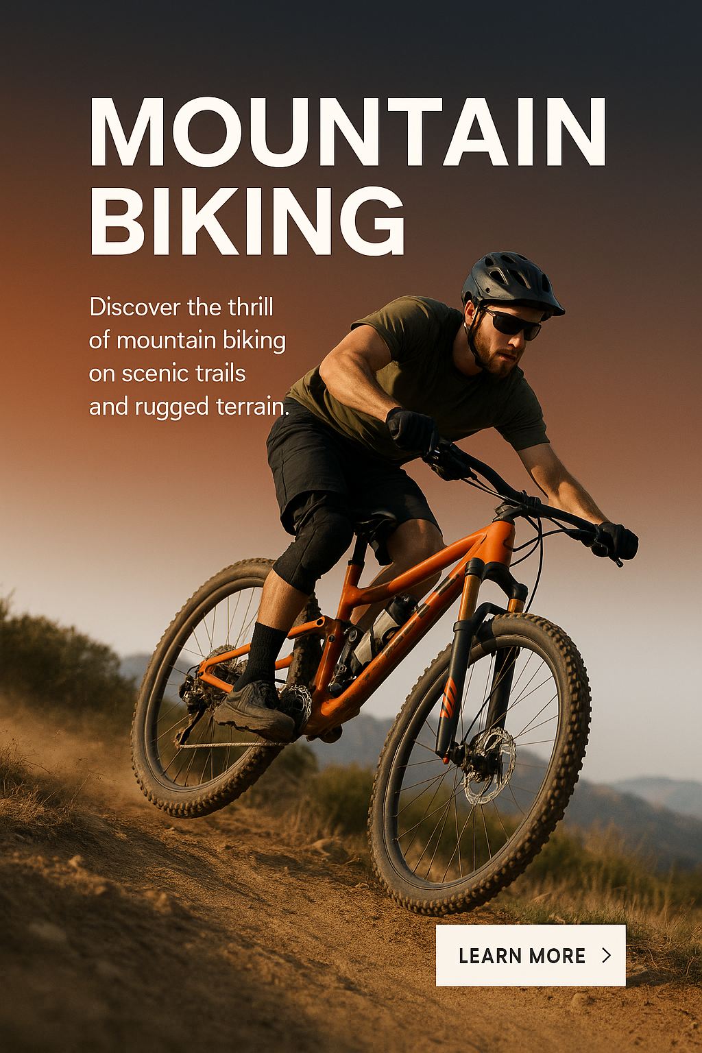 /Collection: /by davooda/Type: PNG/An enthusiastic mountain biker rides swiftly on rugged terrain, showcasing the thrill of adventure. The backdrop features a gradient sunset, enhancing the vibrant scene.
