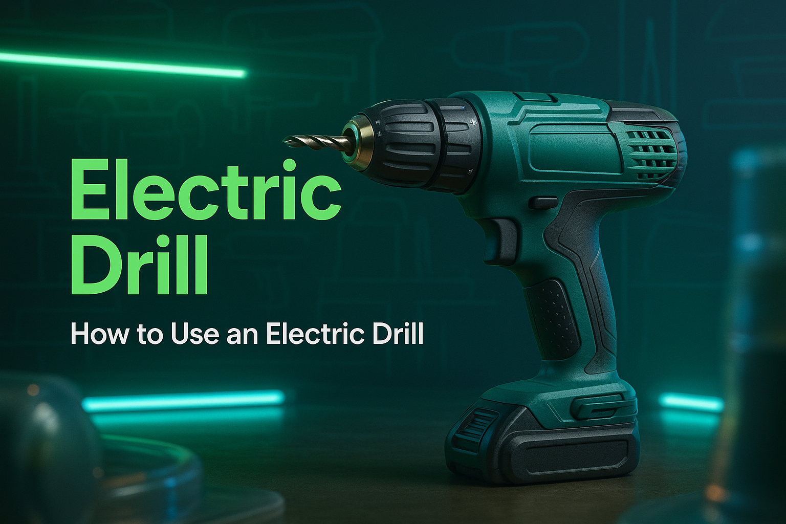 /Collection: /by davooda/Type: PNG/A visually engaging 3D render of an electric drill accompanied by instructional text, suitable for DIY guides or tool tutorials. The modern design emphasizes functionality and ease of use.