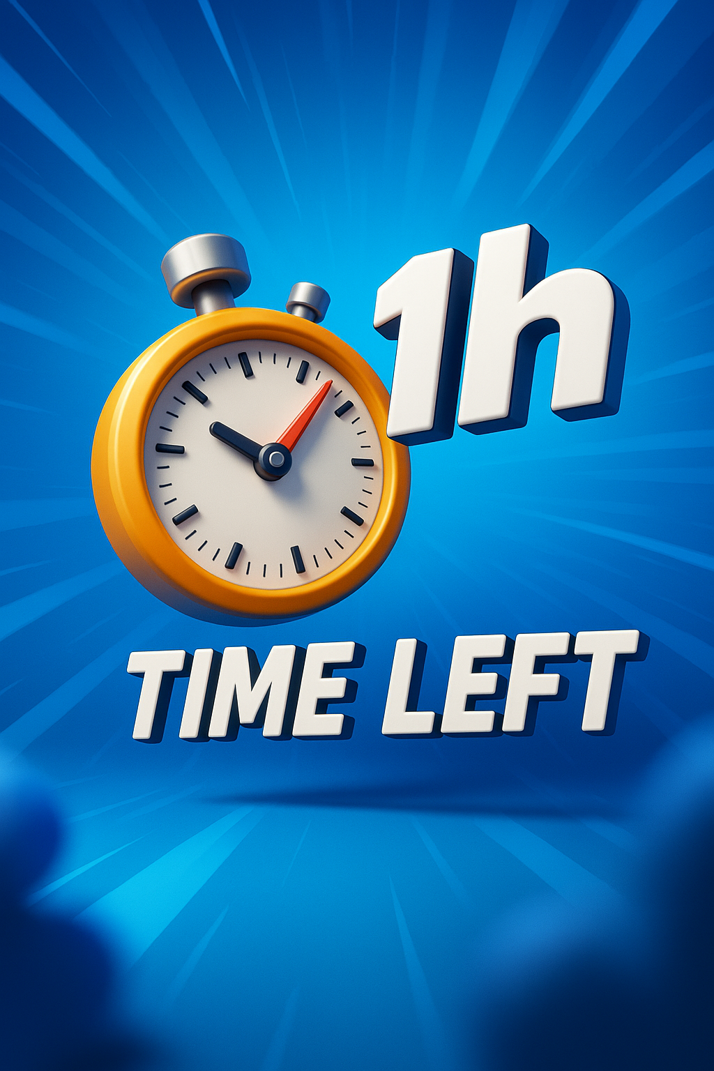 A vibrant graphic featuring a stopwatch with a countdown theme. Ideal for promotional content or urgency-based messaging on social media.