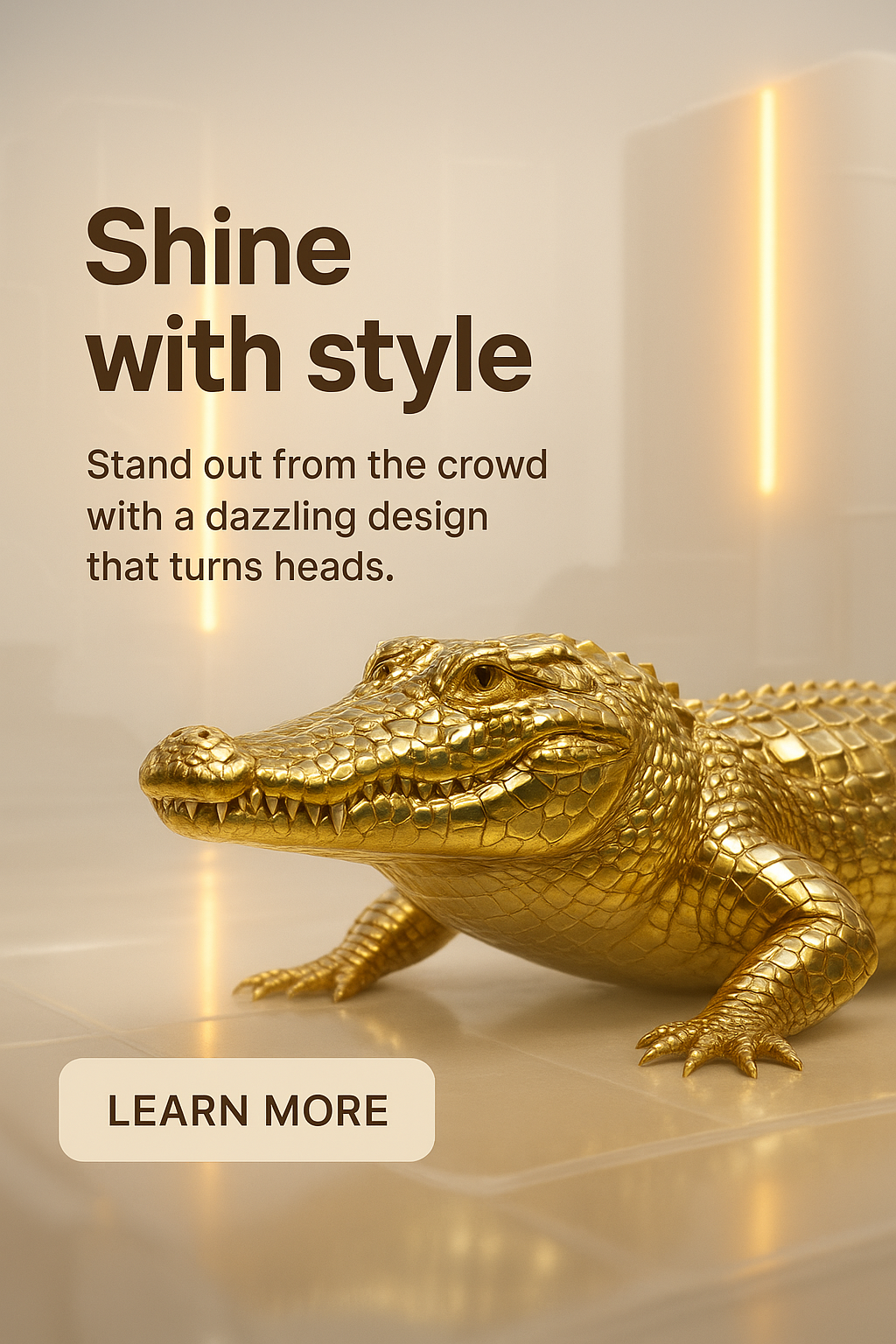 This is a promotional banner featuring a golden crocodile design. It employs a sleek, modern aesthetic with a luxurious feel, aimed at attracting attention in marketing contexts.