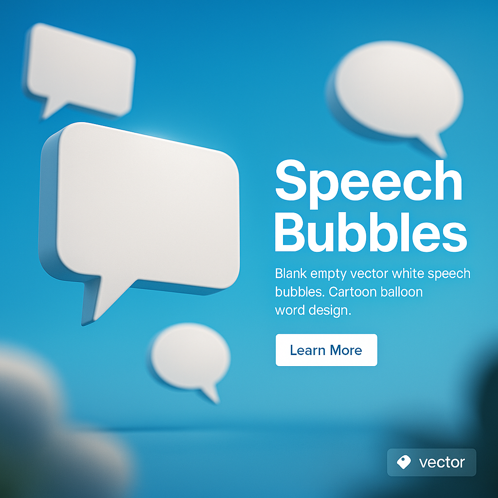 /Collection: /by davooda/Type: PNG/A visually striking set of blank white speech bubbles against a vibrant blue background, emphasizing communication. The design is clean and professional, featuring a prominent call-to-action button.