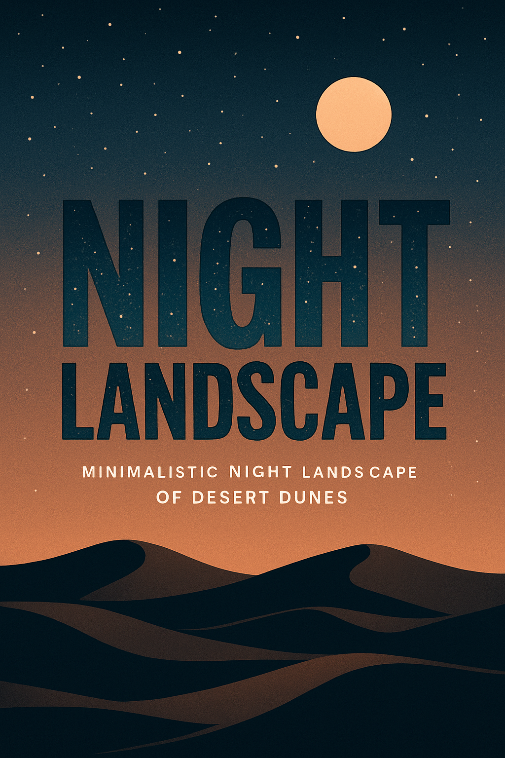 Minimalistic Night Landscape Illustration with Desert Dunes