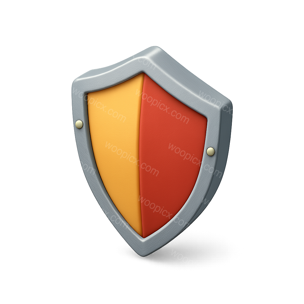 A stylized 3D icon resembling a shield, featuring a gray border and divided into red and yellow sections, symbolizing protection and security.