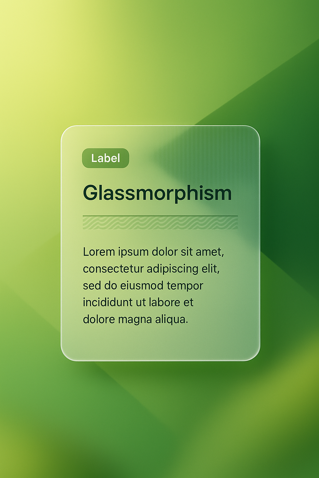 A 3D illustration featuring a soft green gradient background with a translucent glassmorphism effect. The design incorporates a label and text block that integrates seamlessly into the composition.