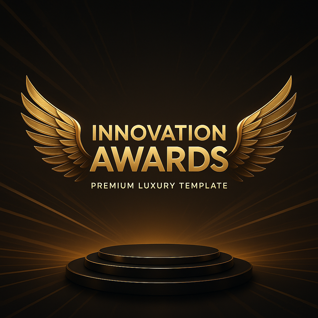 /Collection: /by davooda/Type: PNG/This graphic features a luxurious design with golden wings and a podium, suitable for award ceremonies or recognition events. The style conveys elegance and prestige.