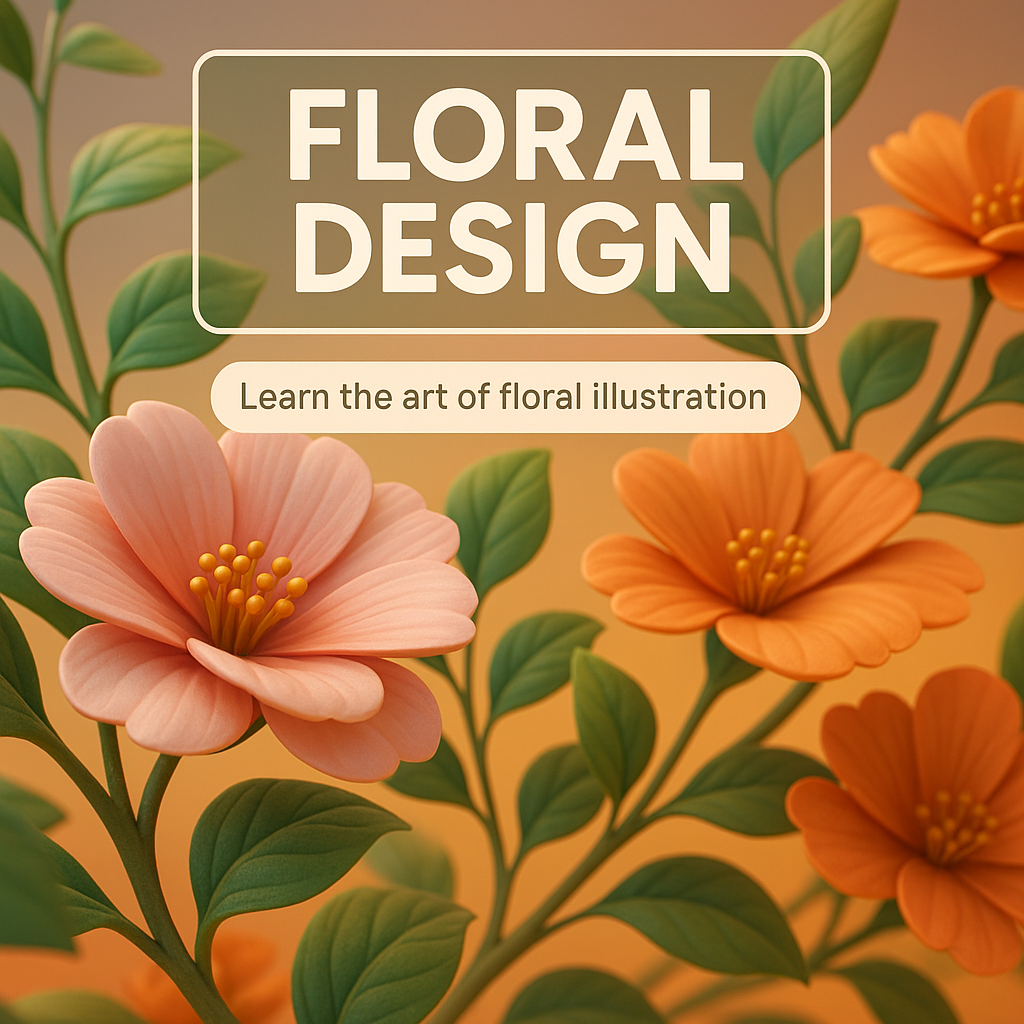 /Collection: /by davooda/Type: PNG/Vibrant floral illustration featuring soft peach flowers and green leaves, designed for educational purposes in the art of floral design. Ideal for creative workshops and online courses.