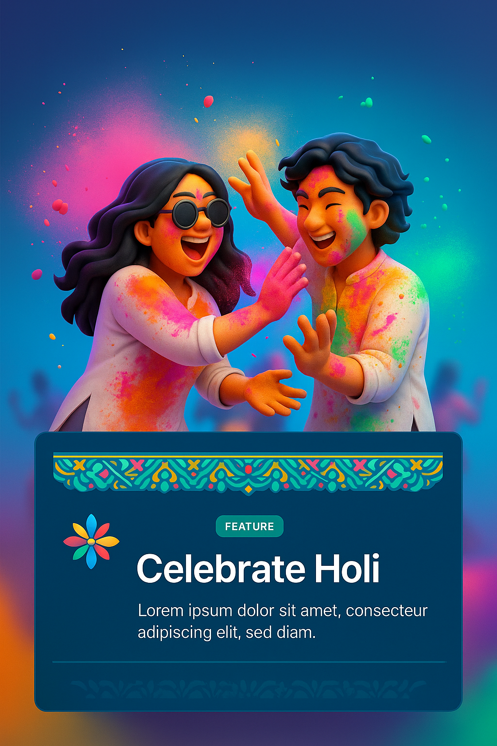 Vibrant Holi Festival Celebration in 3D Art