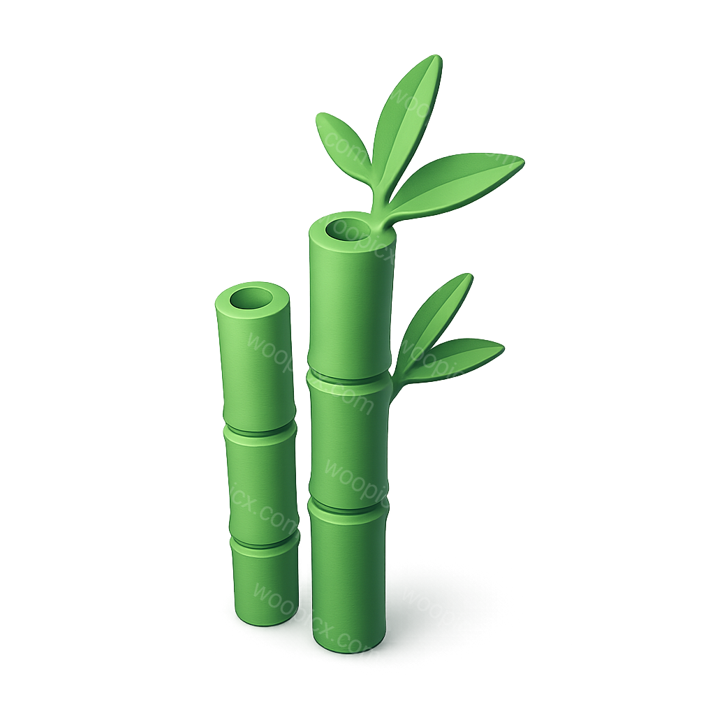 A vibrant 3D representation of bamboo stalks with leaves, showcasing a three-quarter view on a transparent background. The design features a smooth, volumetric look emphasizing a modern aesthetic.
