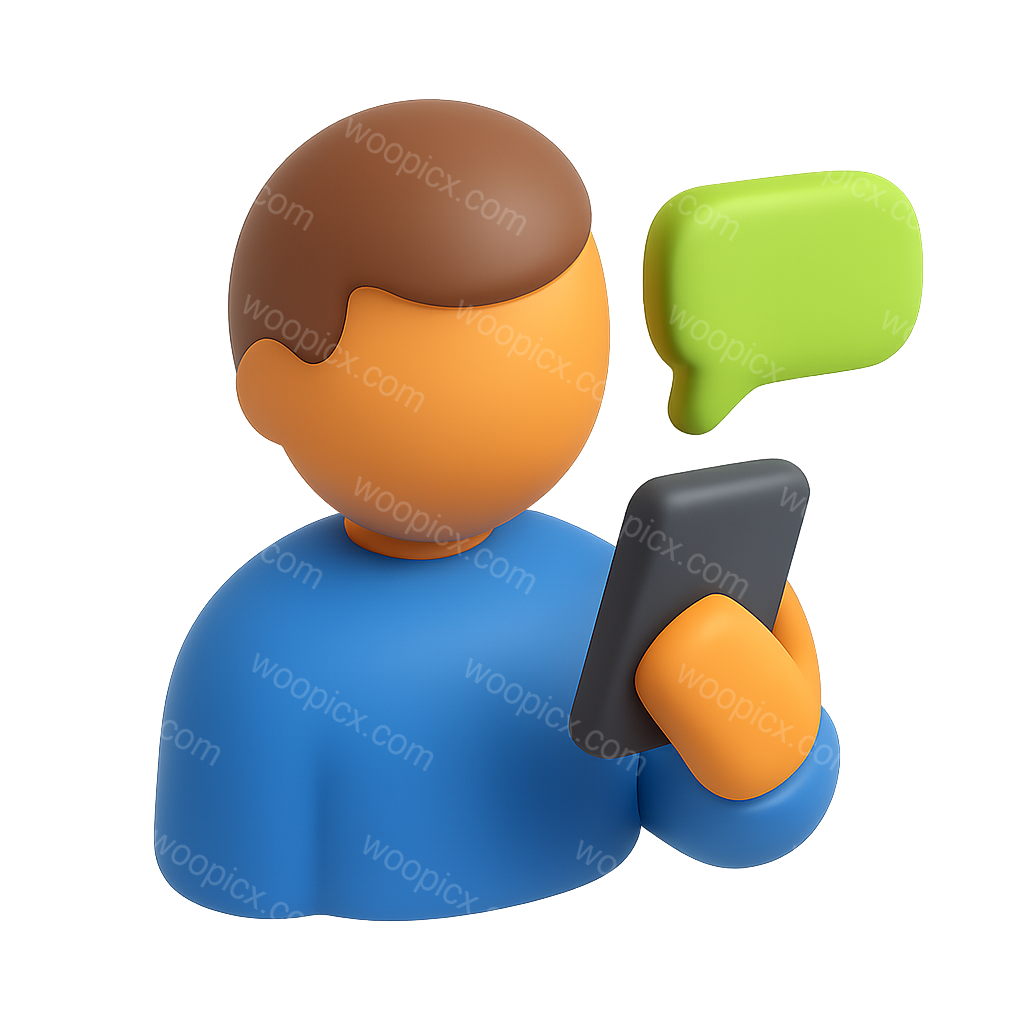 /Premium/Collection: /by davooda/Type: PNG/A vibrant 3D icon depicting a person holding a smartphone, with a chat bubble in view. The design features a three-quarter angle, emphasizing a volumetric and isometric style.